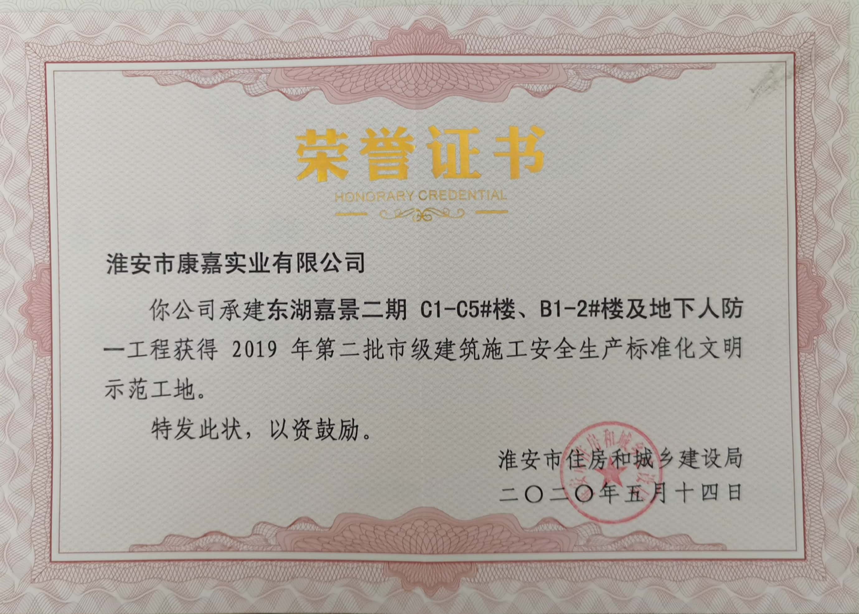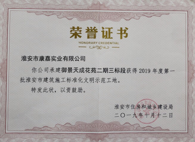 市級(jí)標(biāo)化文明示范工地榮譽(yù)