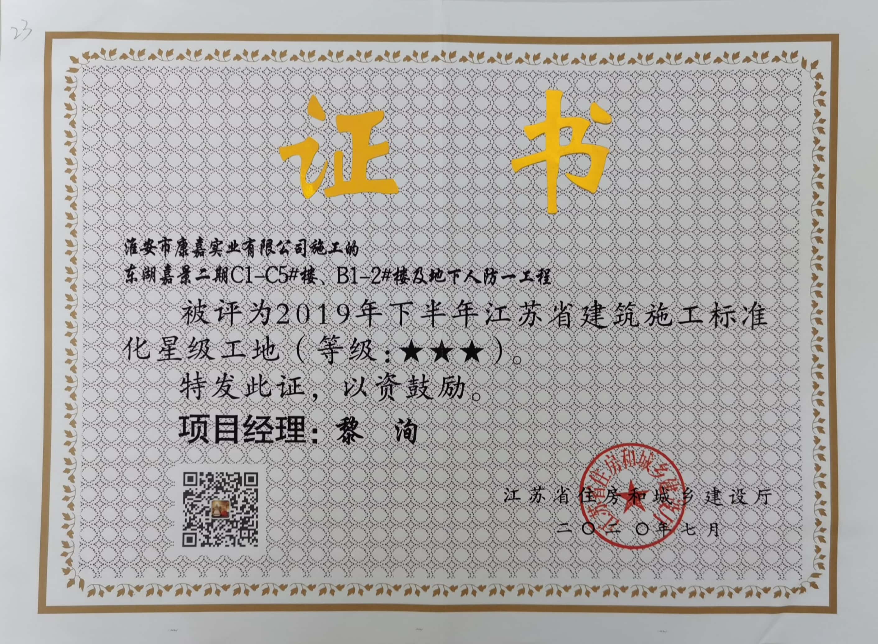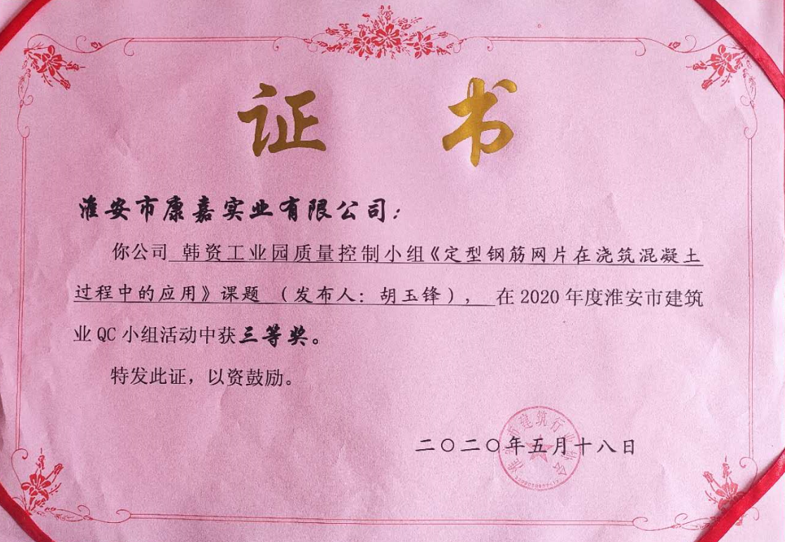 2020年淮安市建筑業(yè)QC小組活動(dòng)三等獎(jiǎng)