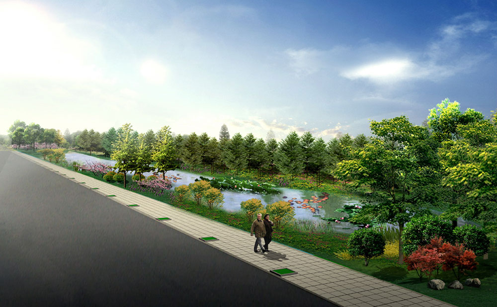 蘇北灌溉總渠-規(guī)劃金湖至馬壩高速公路水塘溝渠段效果圖