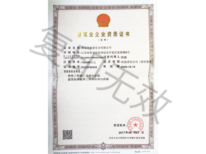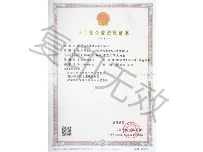 康嘉實(shí)業(yè) >> 首頁(yè) >> 走進(jìn)康嘉 >> 資質(zhì)證書